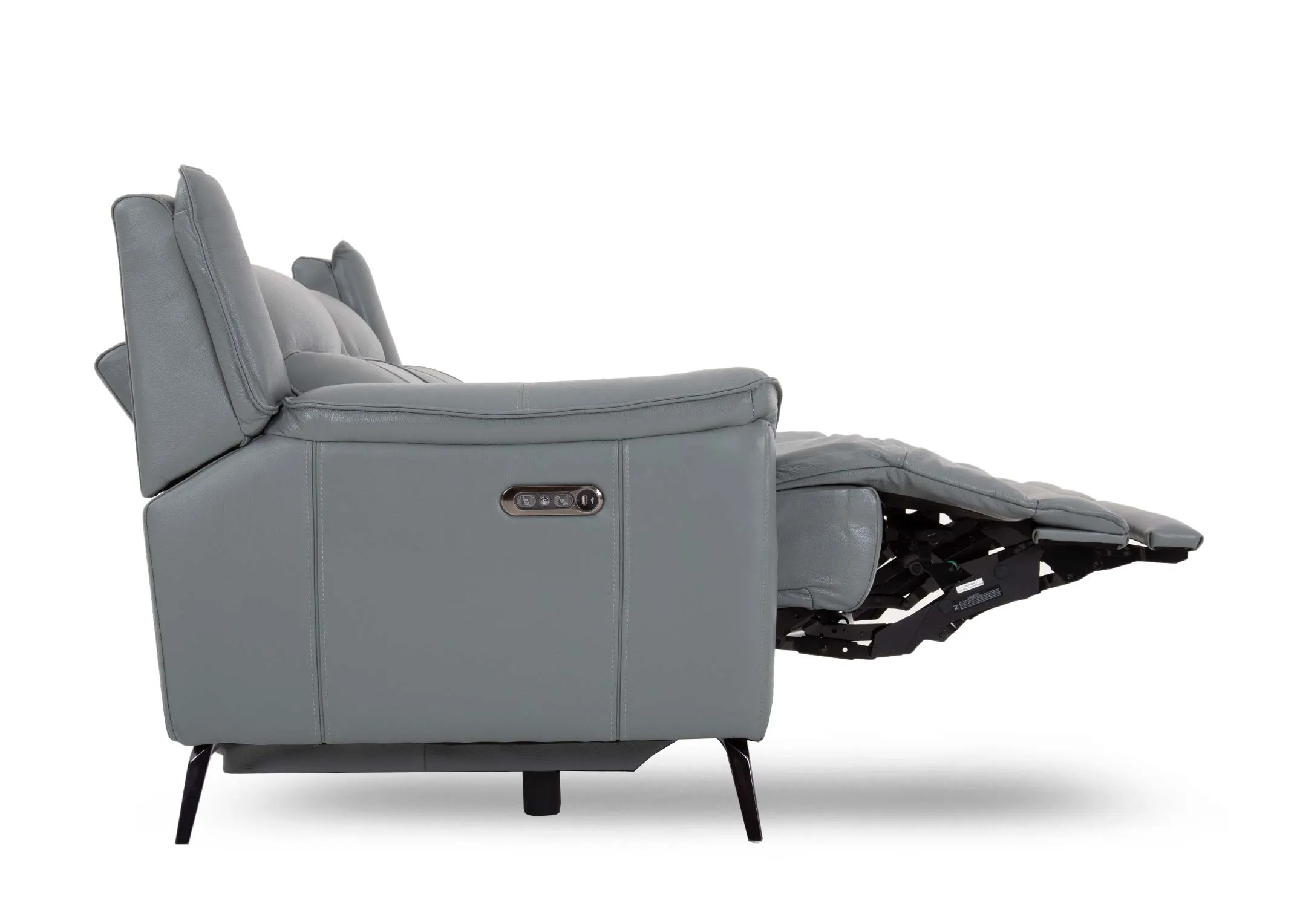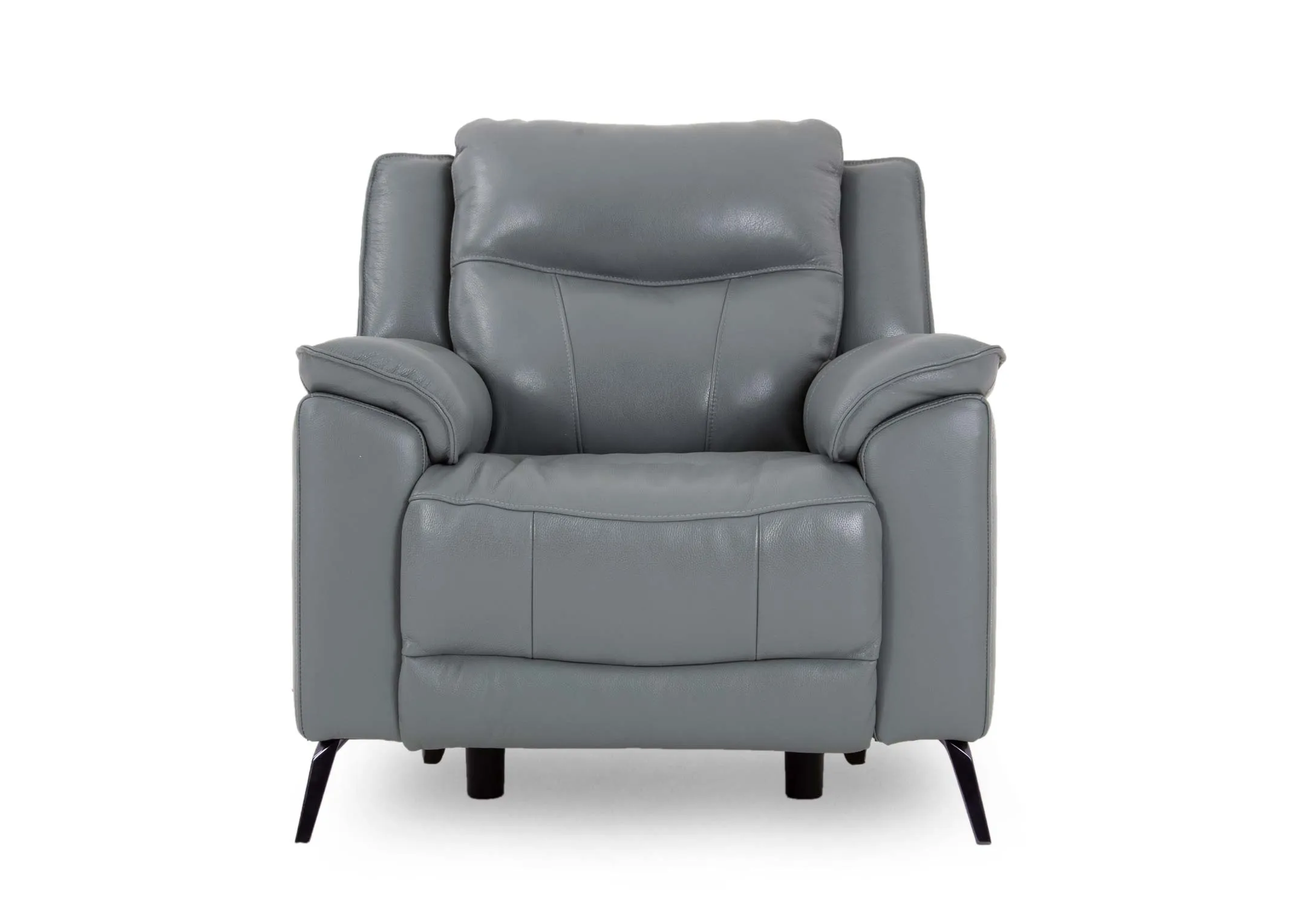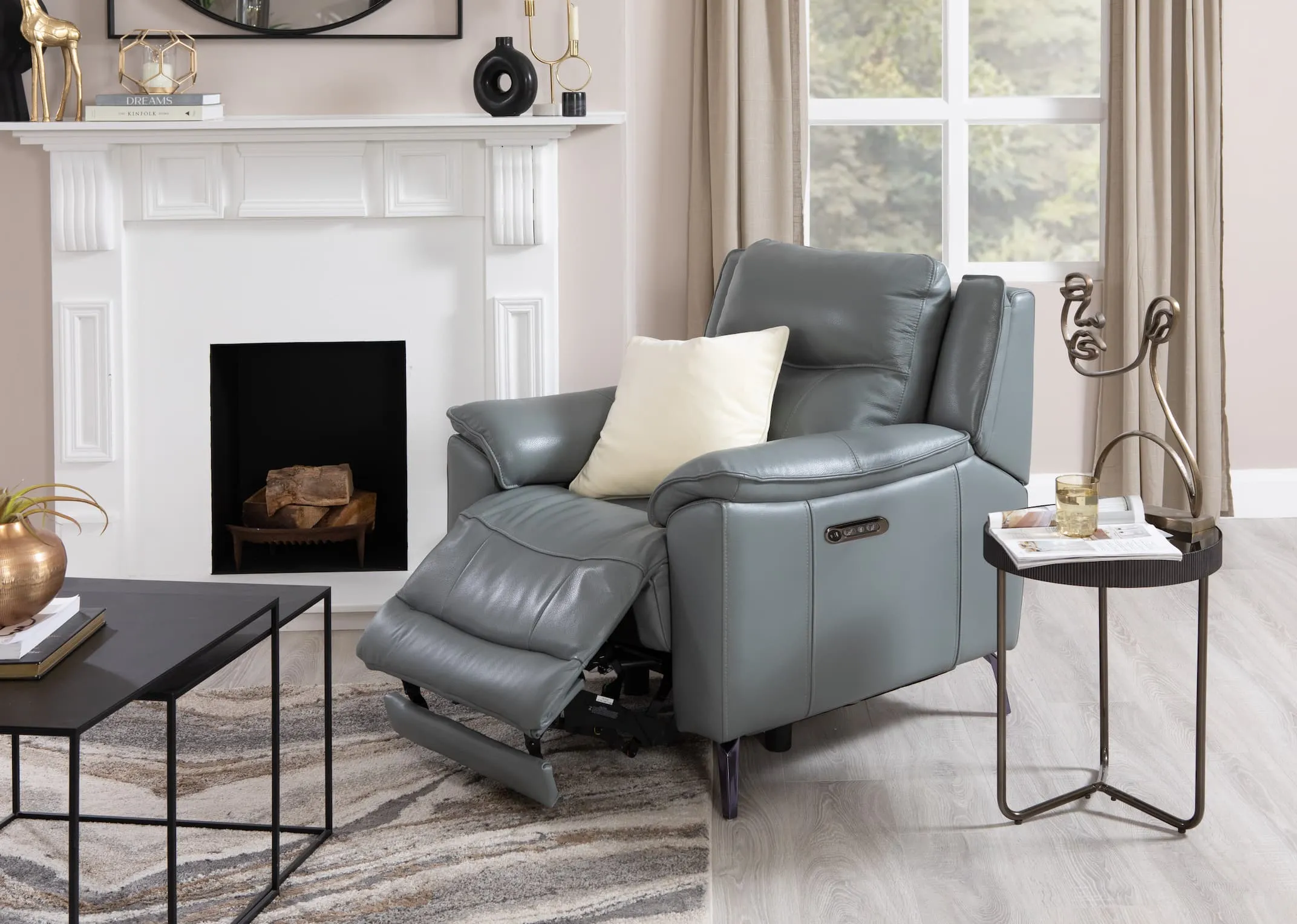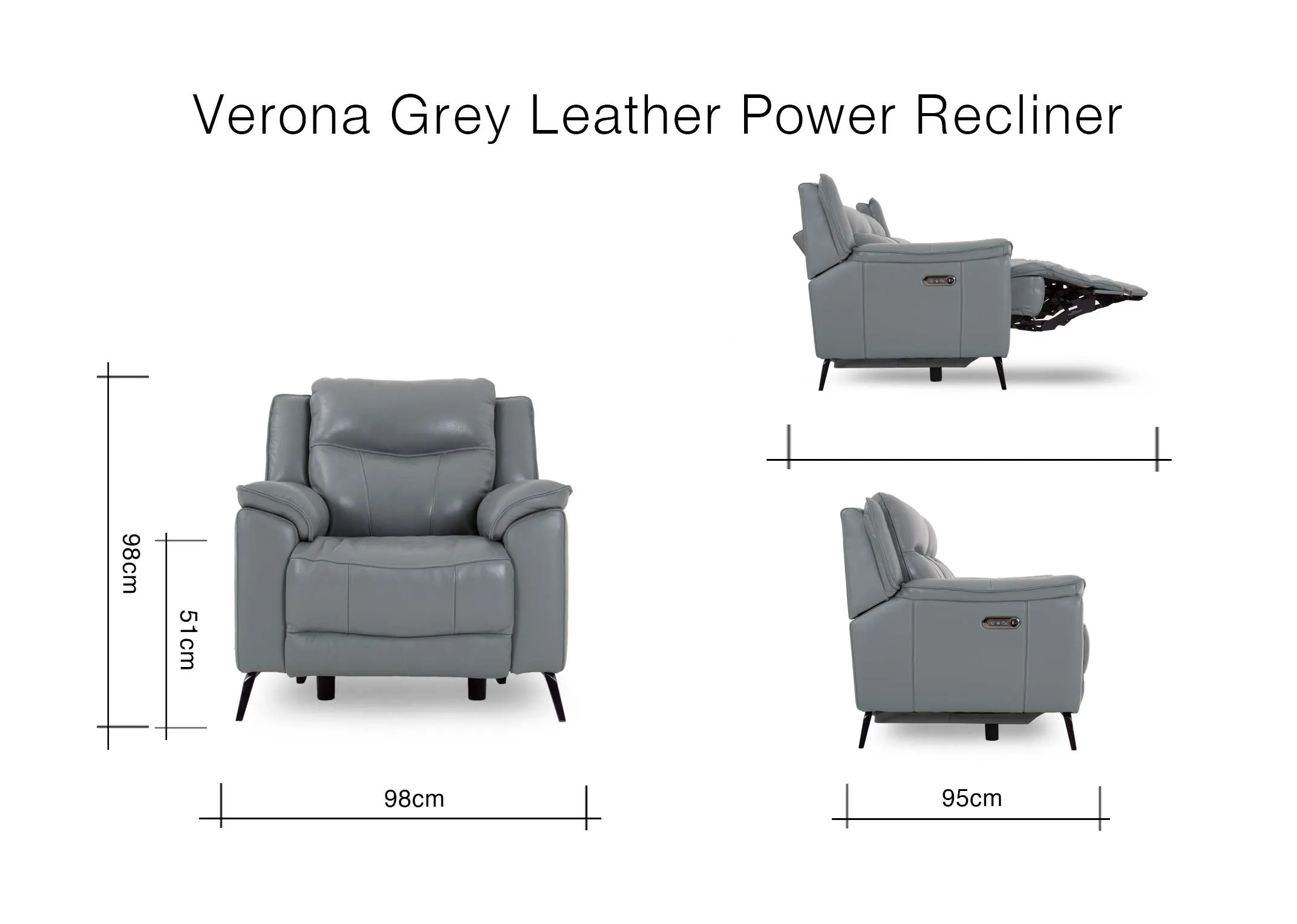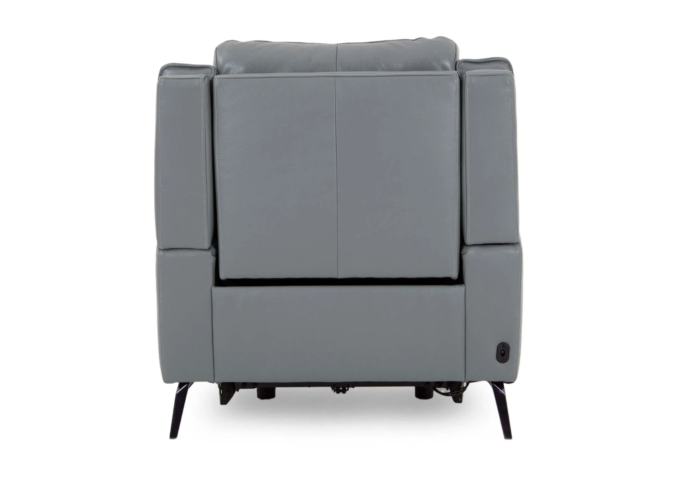 Style, comfort, and modern-day convenience are combined to bring you the Verona Light Blue Leather Power Recliner.