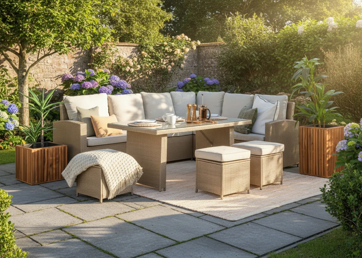 Light Brown Corner Garden Dining Set - Malaga