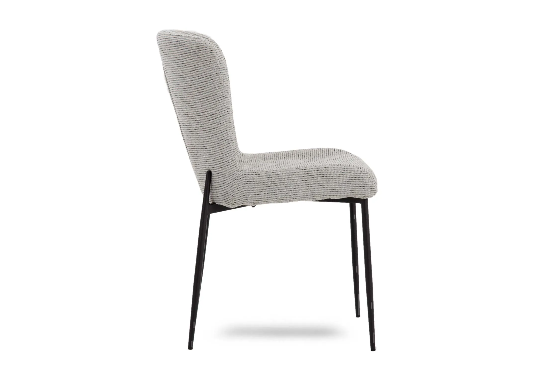 Upholstered in a light grey fabric and accented by black metal legs, the Erin Dining Chair would be a great choice.