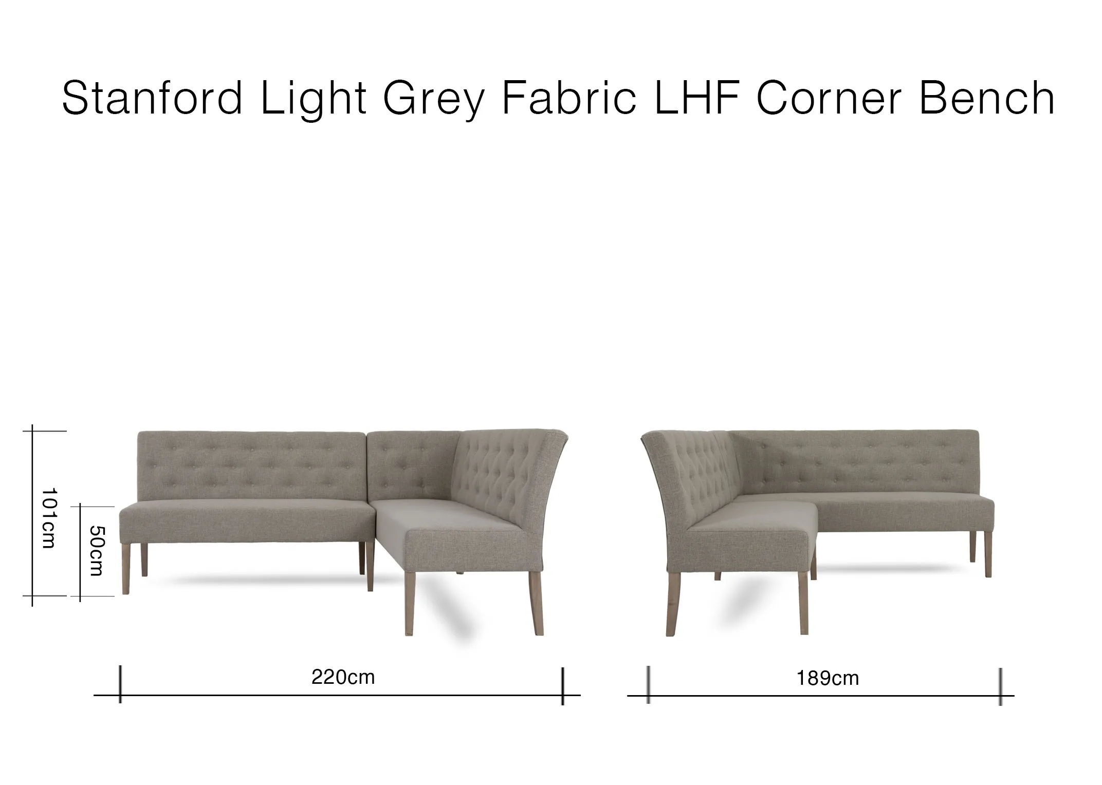 Light Grey Fabric LHF Corner Dining Bench - Stanford
