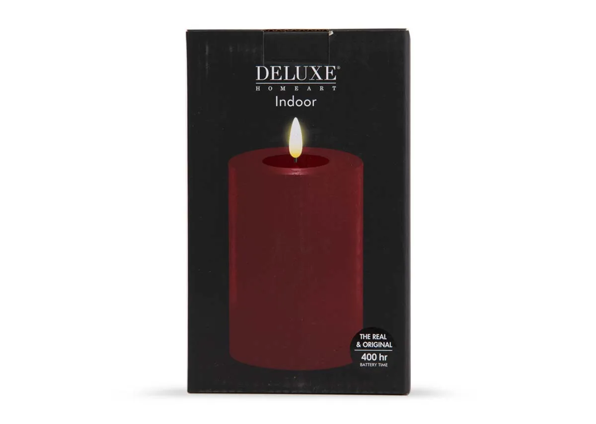 A battery operated 10cm x 15cm red LED candle made with a wax finish which emulates a real life like candle.
