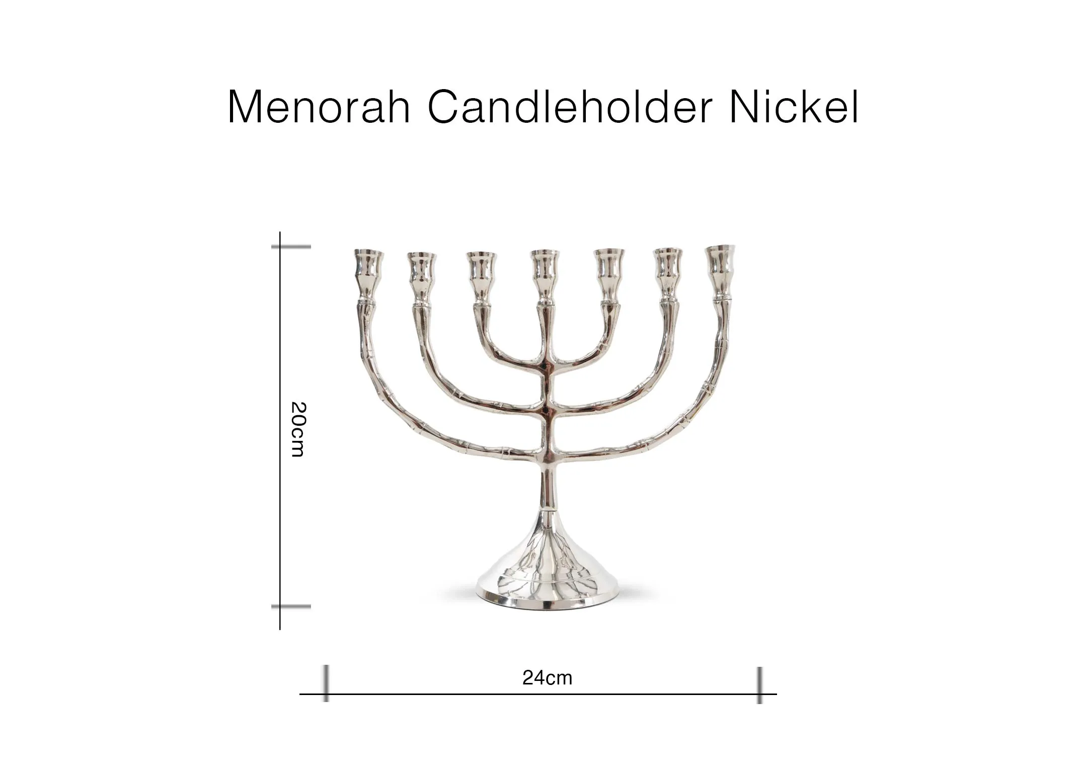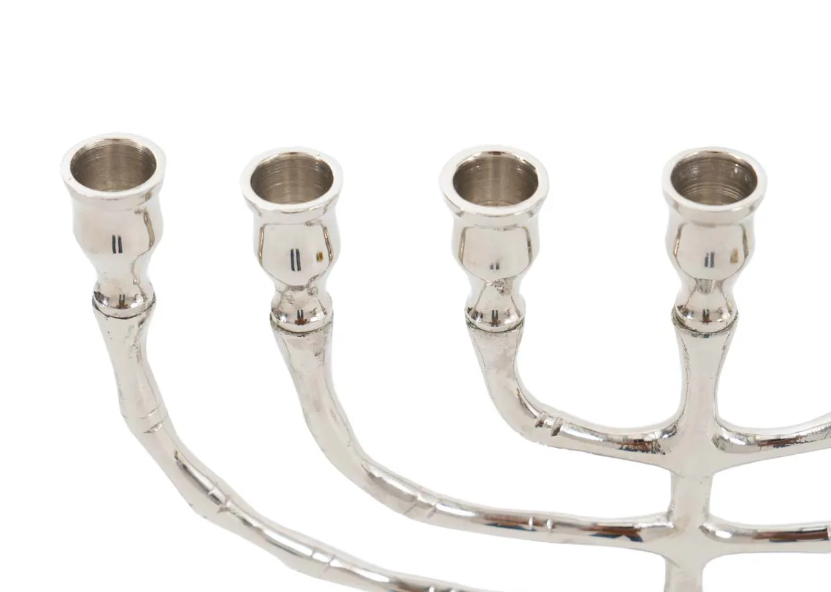The Nickel Menorah Candle Holder features multiple arms, with the ability to accommodate 7 long, taper candles in total.