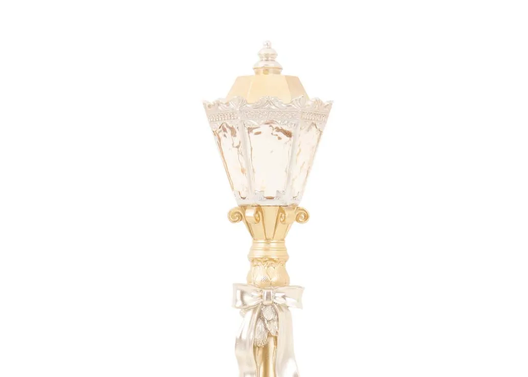 Metallic Gold LED Lamppost with Pearl Garland - Christmas Figurine