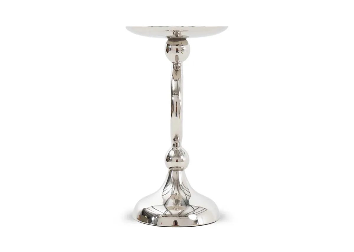 Illuminate your home with the sophisticated shimmer of this nickel pillar candle holder.
