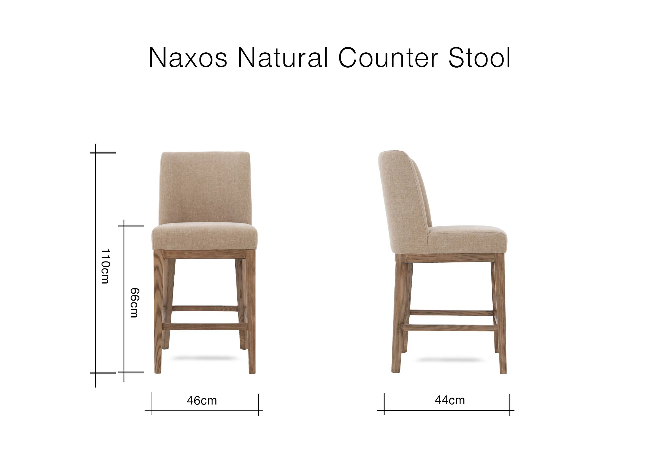 A luxury counter bar stool with a natural cream fabric seat and back full cover, country chic at its best.