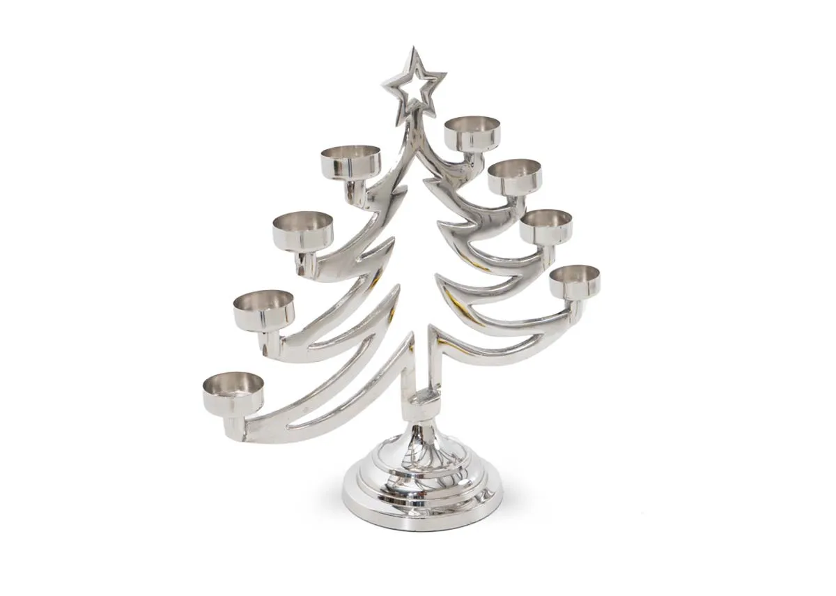 Nickel Xmas Tree with 8 T-Lights - Christmas Candle Holder