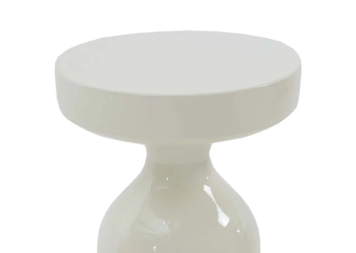 A tall side table made with iron and finished in an off white glossy paint, ideal for your living or bedroom.