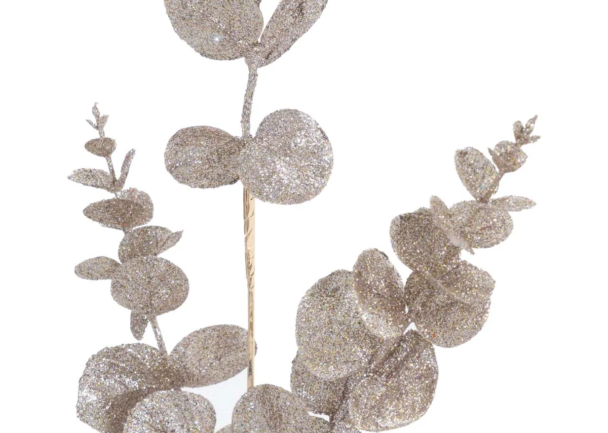 Add a sparkling touch to your festive displays with this enchanting blush glitter eucalyptus pick.