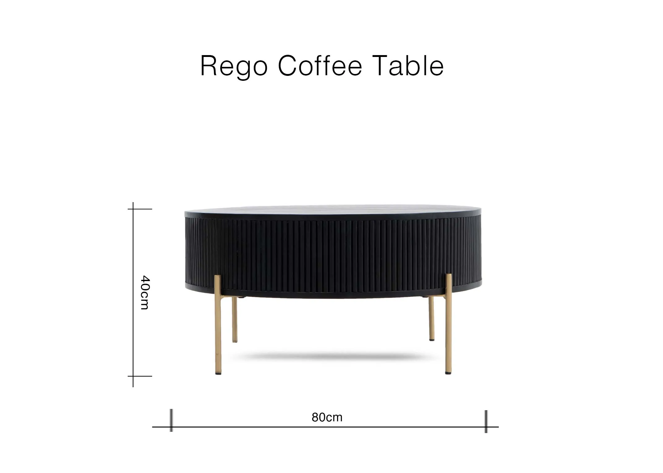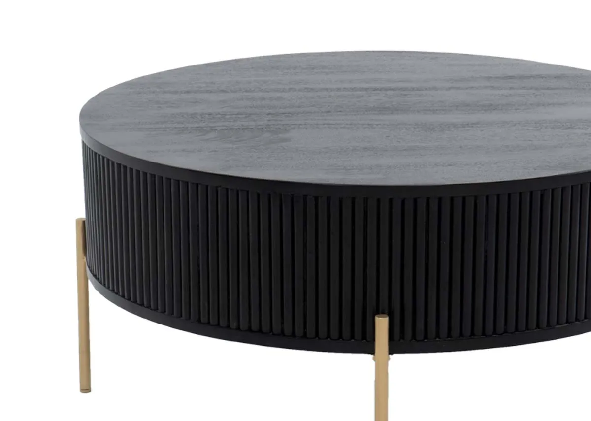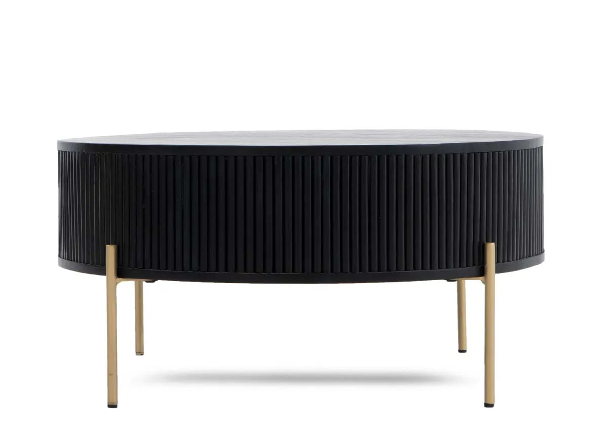 A black fluted mango wood finish with brass legs and round in shape, the Rego coffee table is a sleek choice.