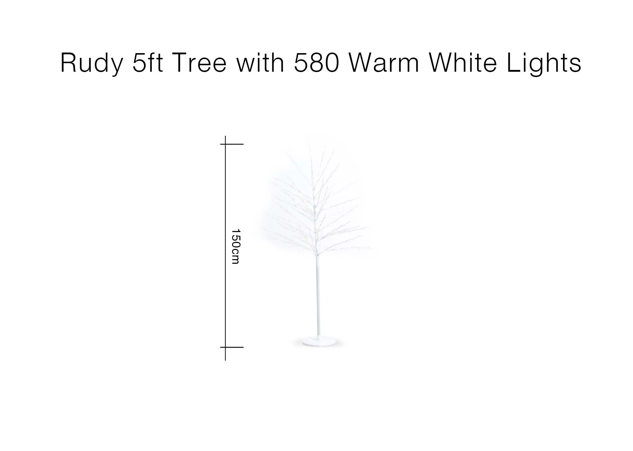 Rudy White 5ft (150cm) with 580 LED Lights - Christmas Tree