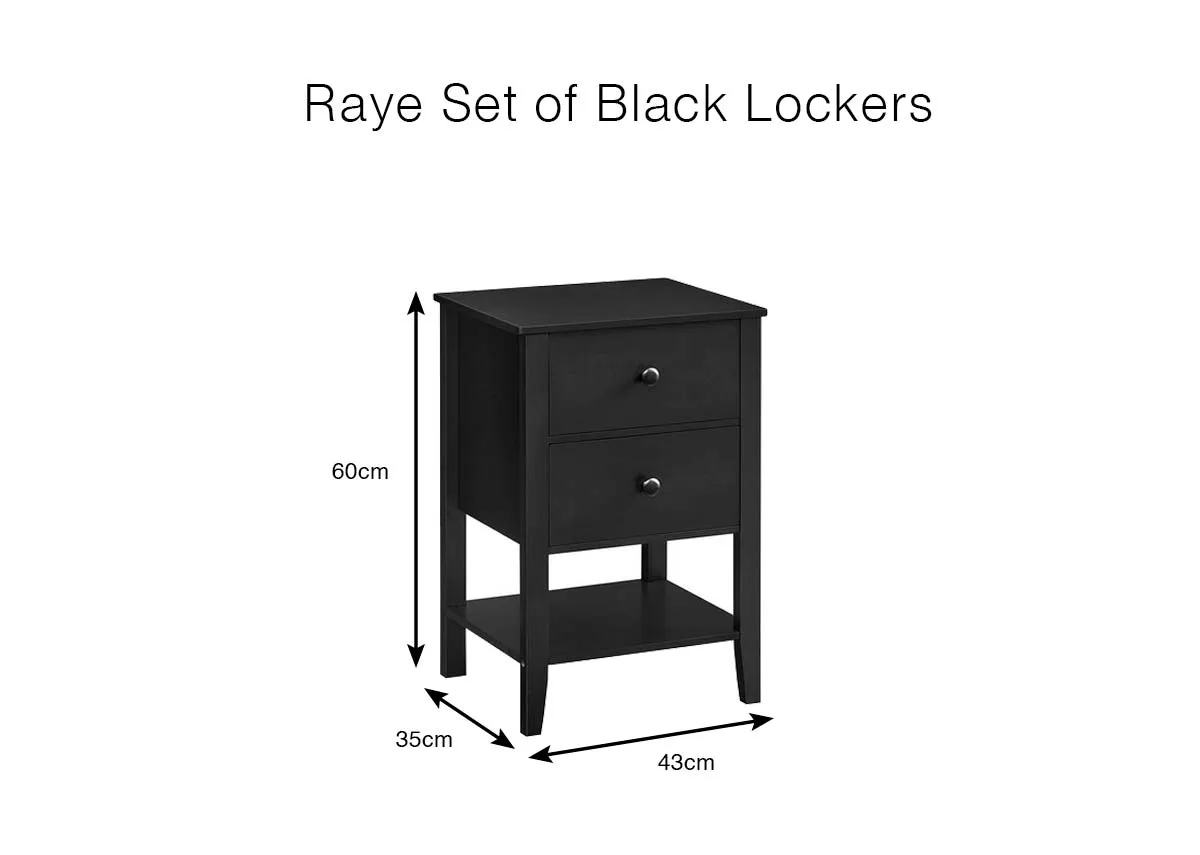 Handy as a set of 2 these Raye black lockers on either side of your bed with a drawer for storage.