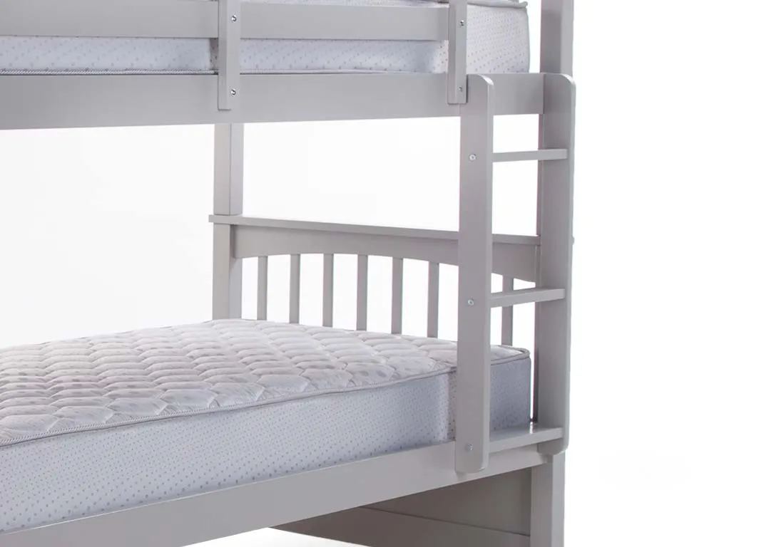 A stylish grey bunk bed, maximizing space in kids' rooms.