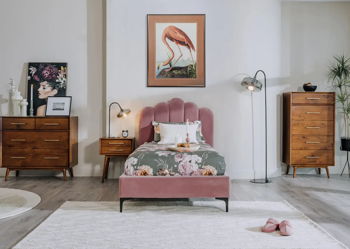 Single (3ft) Pink Fabric Bed Frame - Faye