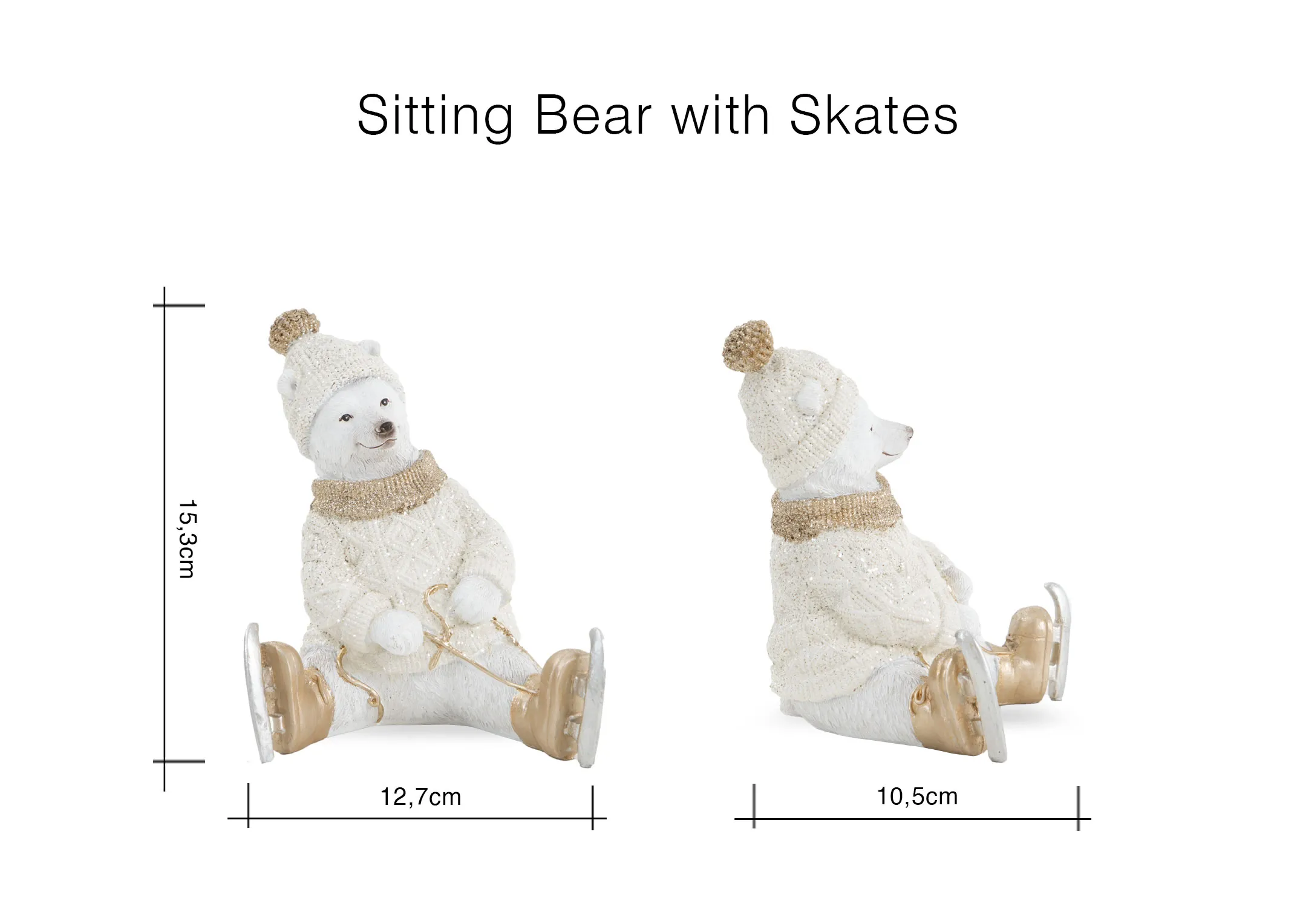 A sitting polar bear with gold skates, a warm, knitted hat and jumper is the must-have seasonal figurine for your home.