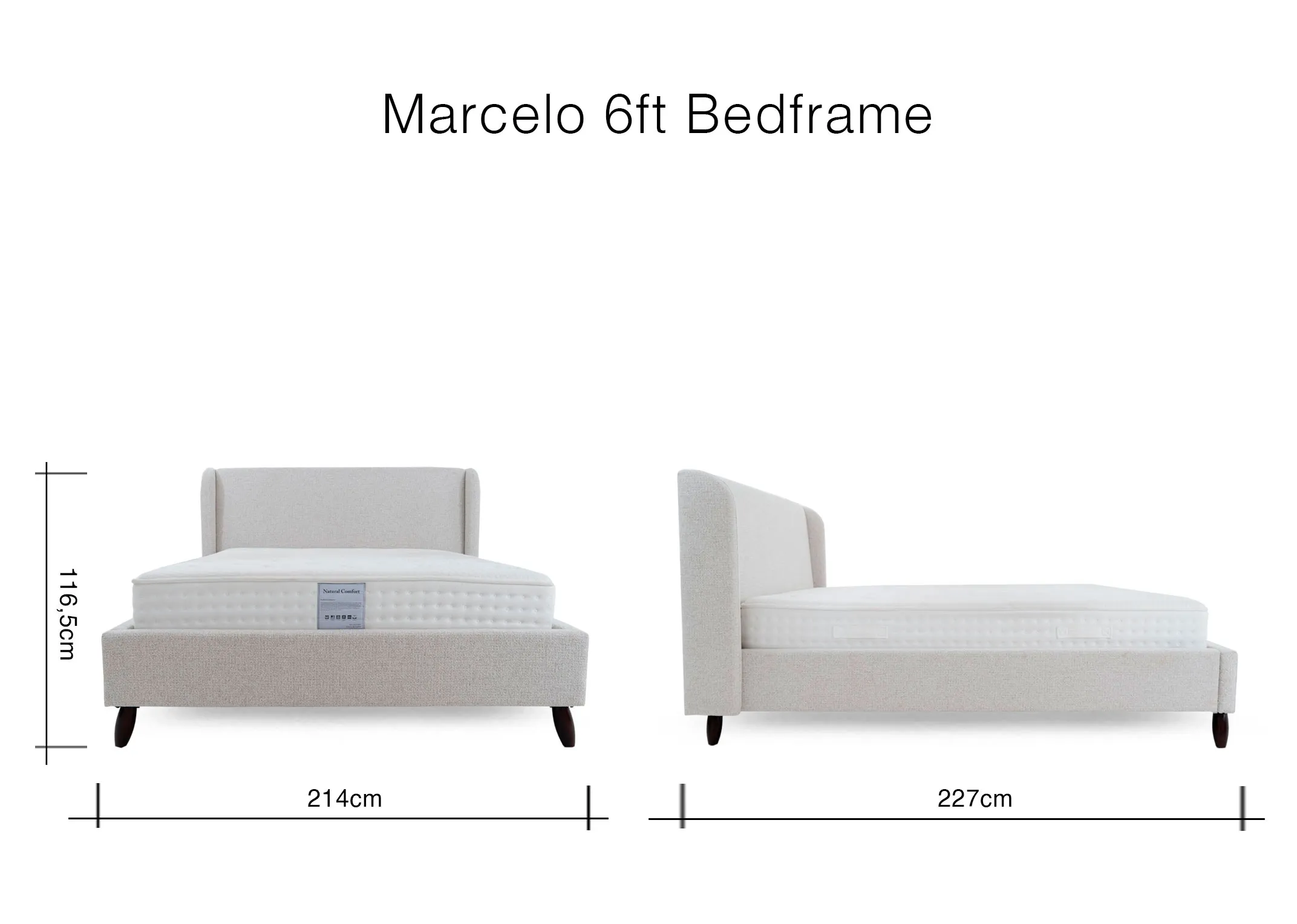 A light grey accent fabric with walnut legs, this simple yet stylish Super king Marcello bedframe will sit beautifully in a guest or master bedroom