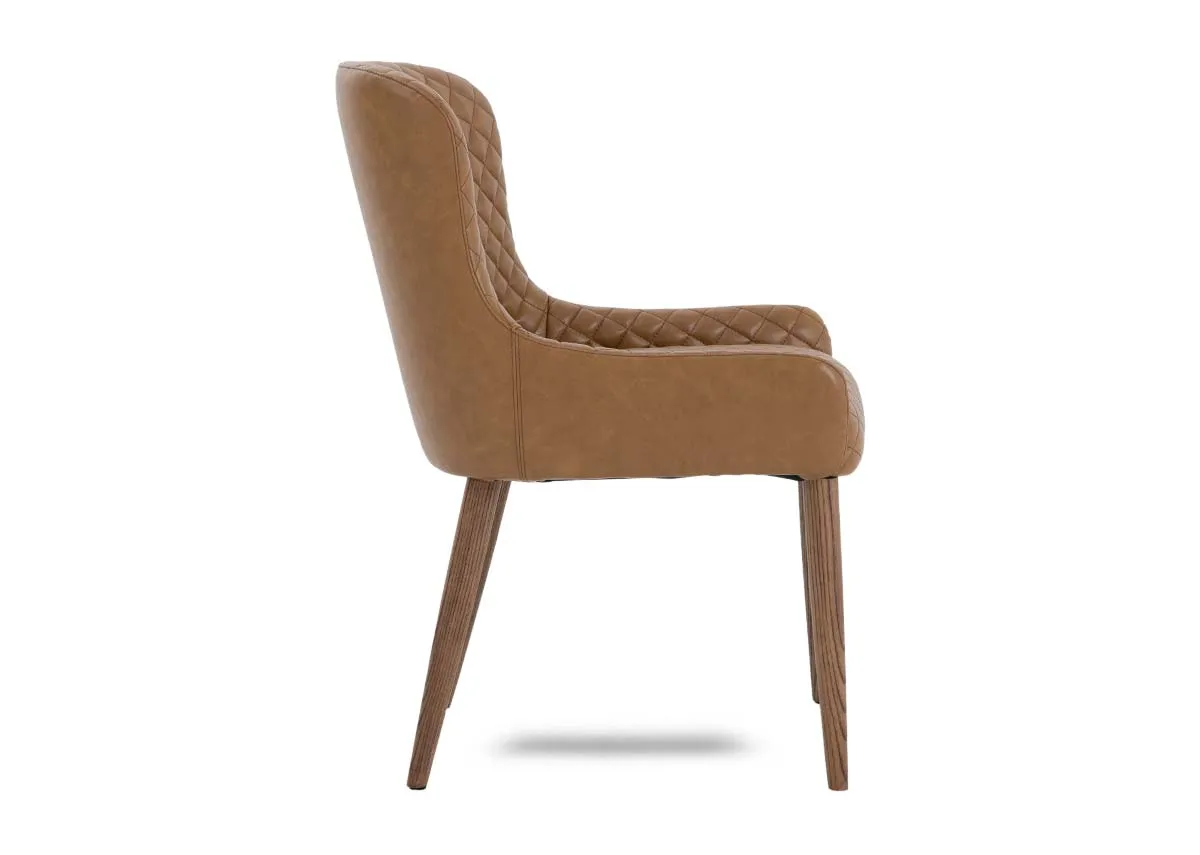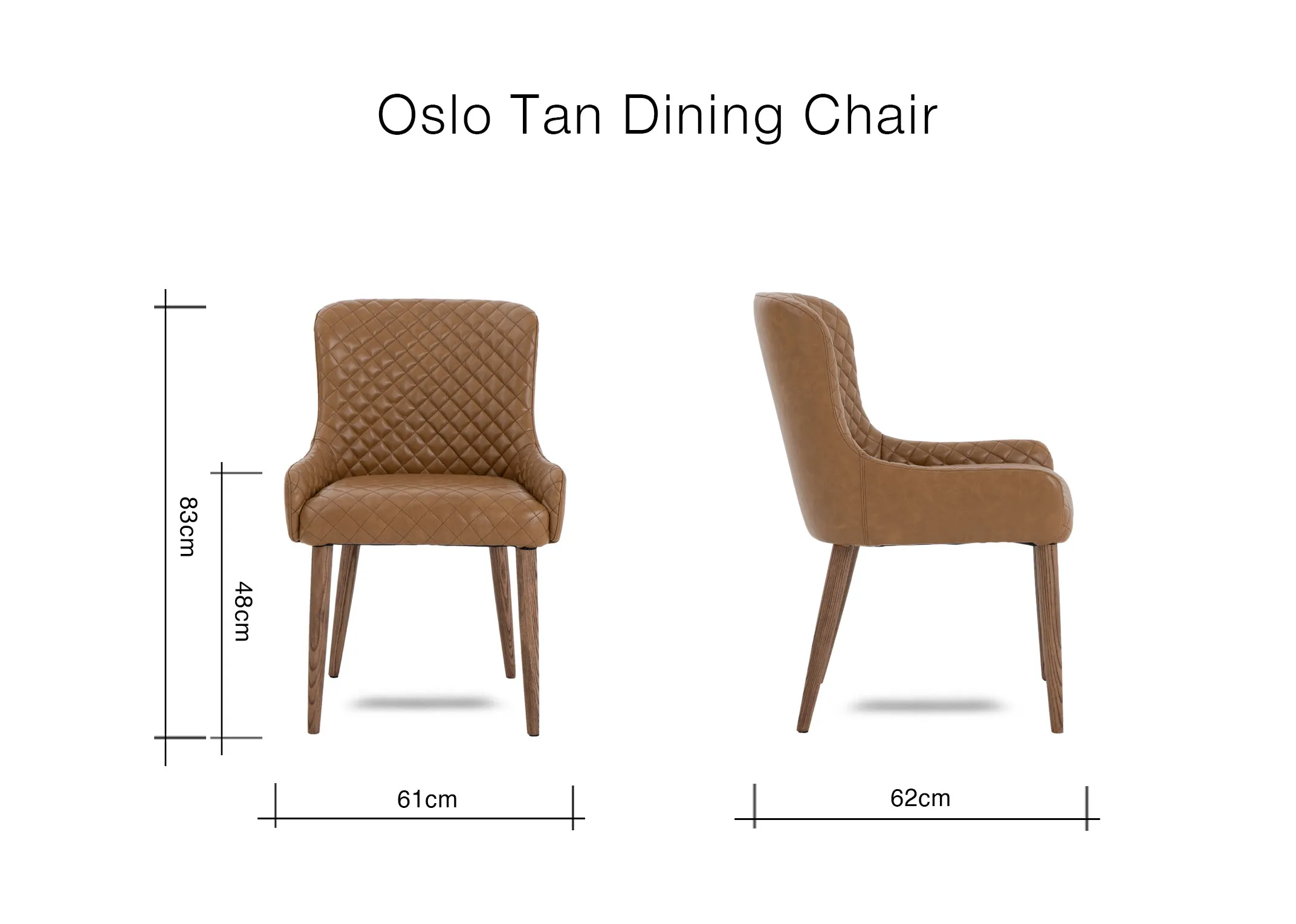 Opt for incredibly comfortable seating at the dining table with an Oslo chair in a tan faux leather upholstery and a quilted design