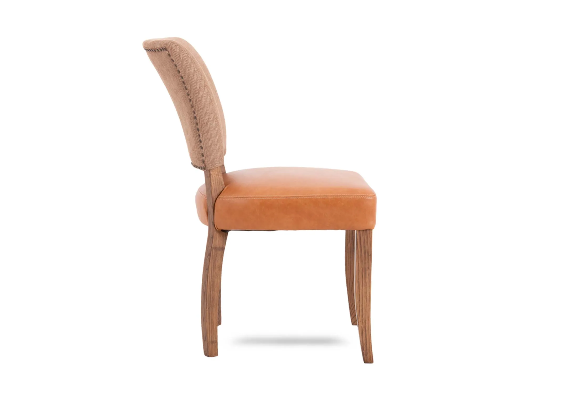 Timeless design meets contemporary colour with the Biarritz Tan Leather & Beige Fabric Dining Chair.