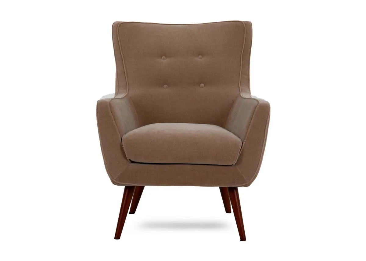 The Stratus taupe armchair boasts a sumptuous look & fabric enhanced by button detail to the back and the on-trend retro look would complement a variety of decorative schemes.