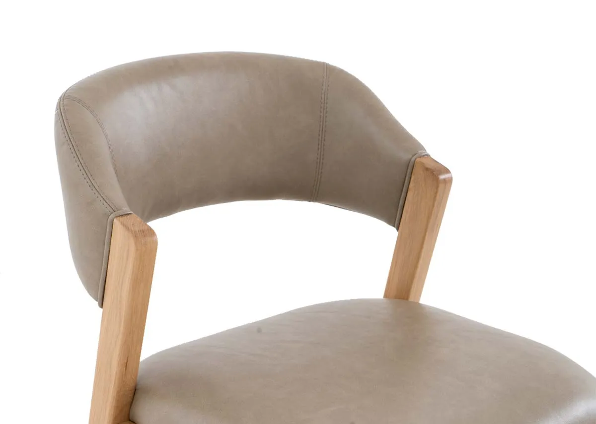 Simple framed in oak wood with a curved faux leather covered back and seat, this gorgeous Renvyle bar stool will bring a subtle texture to your kitchen island.