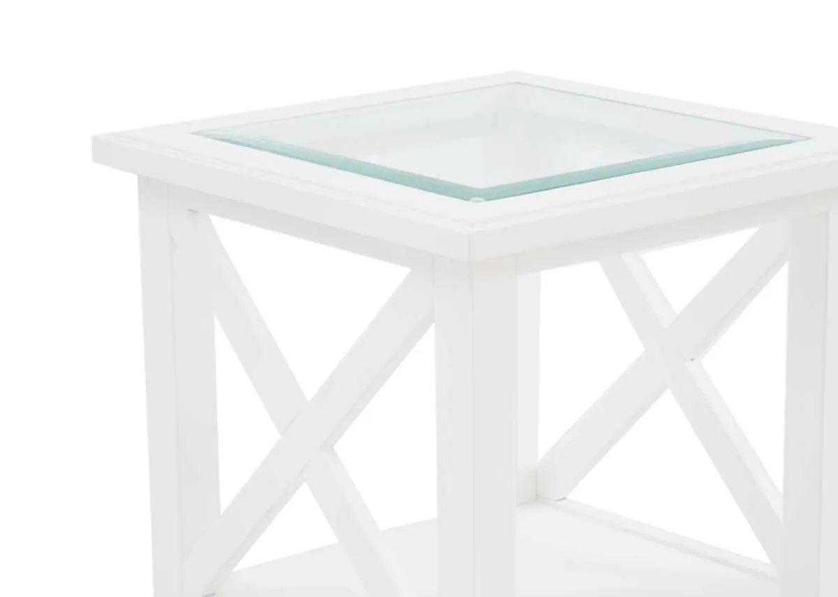 The Hampton white lamp table is made from a strong & durable pine & MDF with a clear glass top to protect the surface which is easy to clean up any spills while there is ample storage underneath.