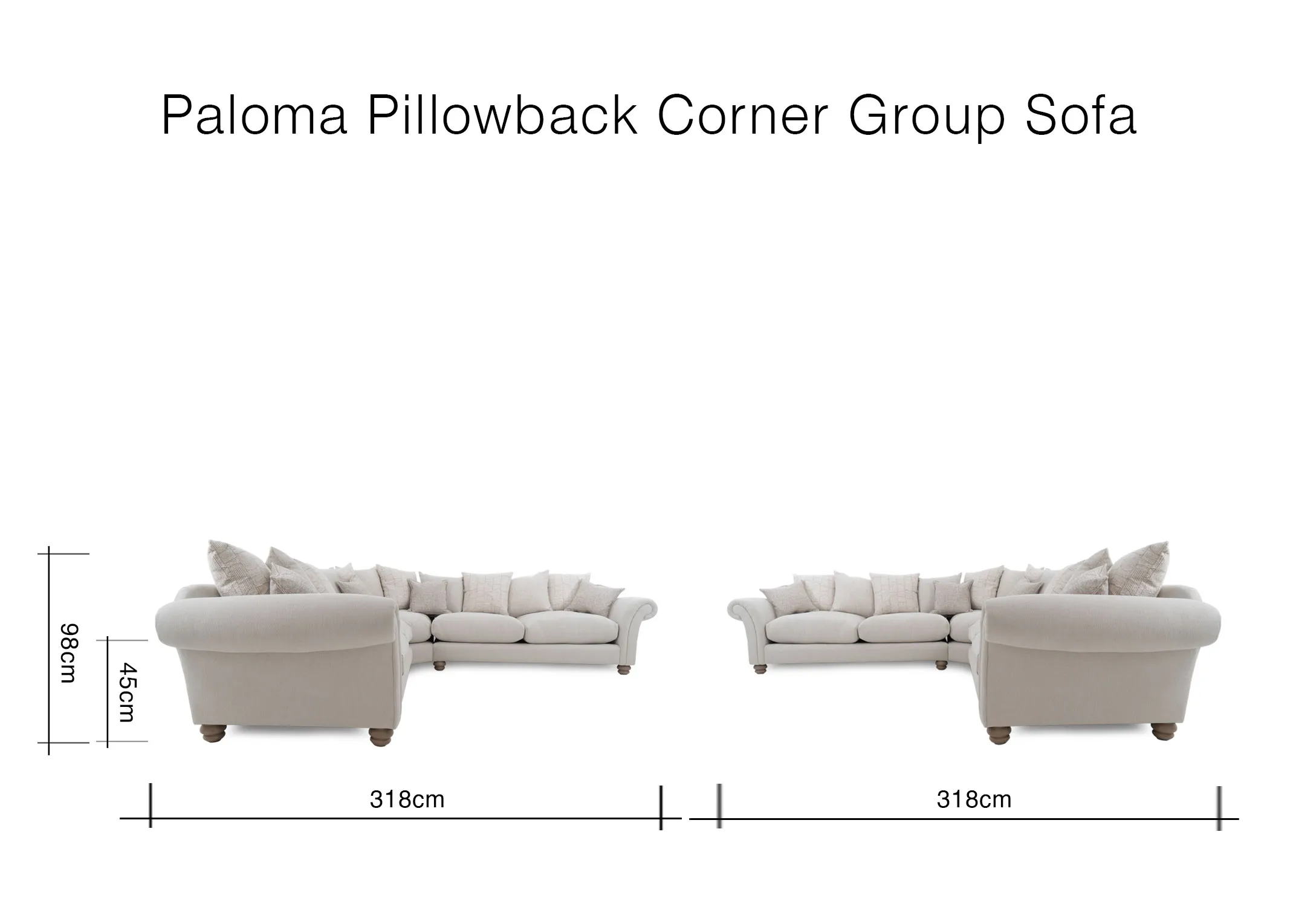 Sink into luxurious comfort with the Paloma XL Cream Fabric Pillowback Corner Sofa, a stylish and generously sized centrepiece crafted for serene relaxation.